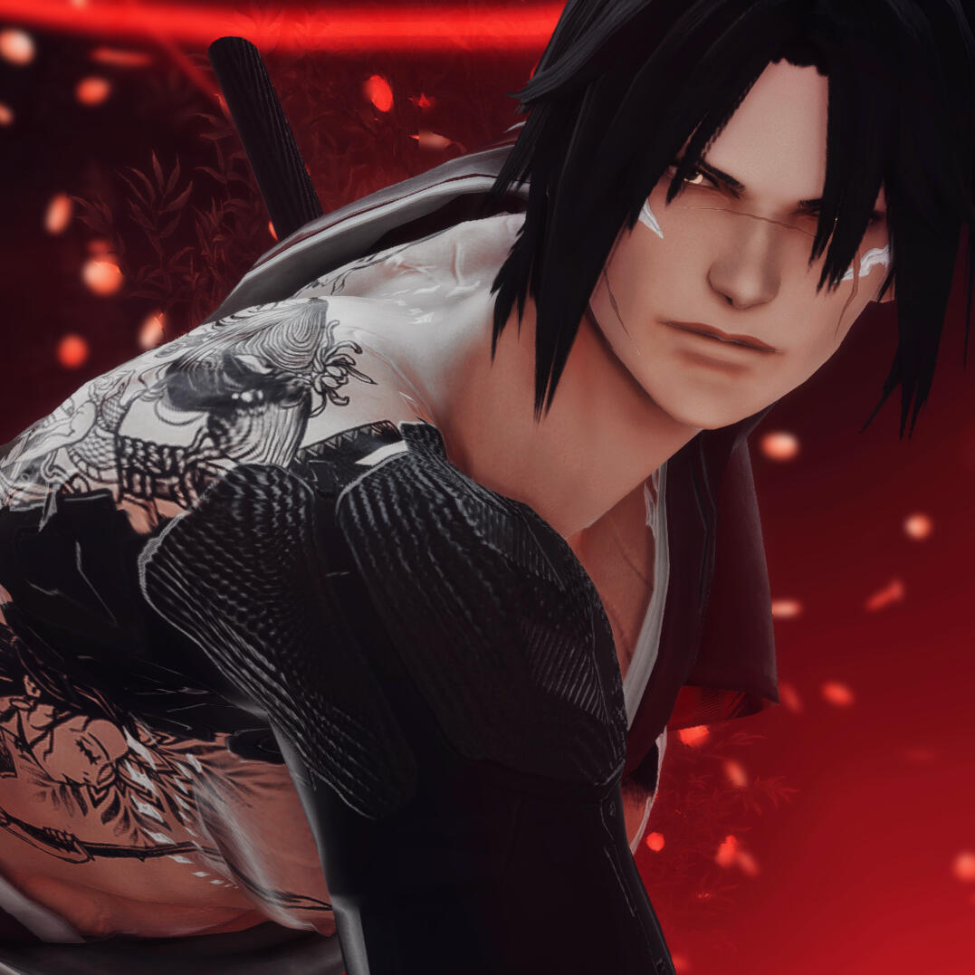 Born to a Midlander mother and Raen Father some thirty years ago, Takemi is not your usual Hyur. Scales trickle across his body, sleek white specks upon marred and inked flesh to tell you of his history.Dark locks hang over a weary face, worn and marred through time. Bright eyes, a sickly yellow with limbal rings stare back and pearlescent fangs peak behinds frowning lips; small traits of his father pushing through, along with his taller than usual height for a Midlander, standing at over 200cm.He has come to work for the Sekisegumi for the last 5 or so years, though he lost his right arm early on in his service - he has not let such a fact hold him back, and the prosthetic arm he had gained has proven just as capable - if not more, than his own.